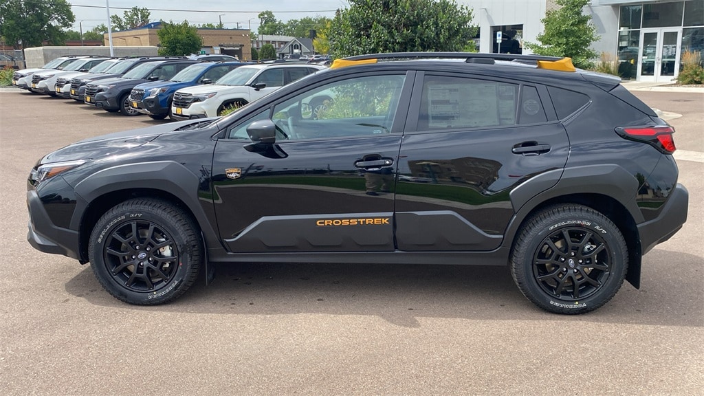Crystal Black Silica 2025 Subaru Crosstrek Wilderness AWD Lineartronic CVT 2.5L 4-Cylinder DOHC 16V Dealer Installed Accessories:, Cargo Net - $70.08, LED Upgrade - $145.15, Mud Flaps - Wilderness - $232.60, Rear Seatback Protector - $172.38, Rear Bumper Cover - Wilderness - $193.83, Crosstrek Wilderness, 4D Sport Utility, 2.5L 4-Cylinder DOHC 16V, Lineartronic CVT, AWD, Crystal Black Silica, Black w/Wilderness StarTex Upholstery.