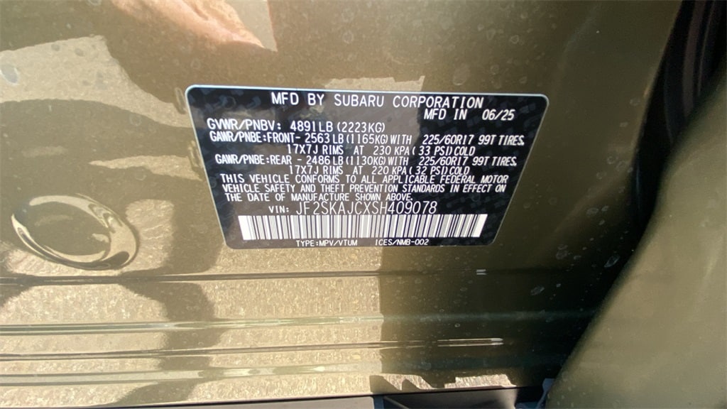 Autumn Green Metallic 2025 Subaru Forester Wilderness AWD Lineartronic CVT 2.5L 4-Cylinder DOHC 16V Dealer Installed Accessories:, Cargo Net - $53.58, Rear Bumper Cover - $210.33, Cargo Sidewall Protector - $129.89, Splash Guards - $210.33, Rear Seatback Protector - Wilderness - $172.38, LED Upgrade - $107.17, Forester Wilderness, 4D Sport Utility, 2.5L 4-Cylinder DOHC 16V, Lineartronic CVT, AWD, Autumn Green Metallic, Gray w/Textured StarTex Upholstery.