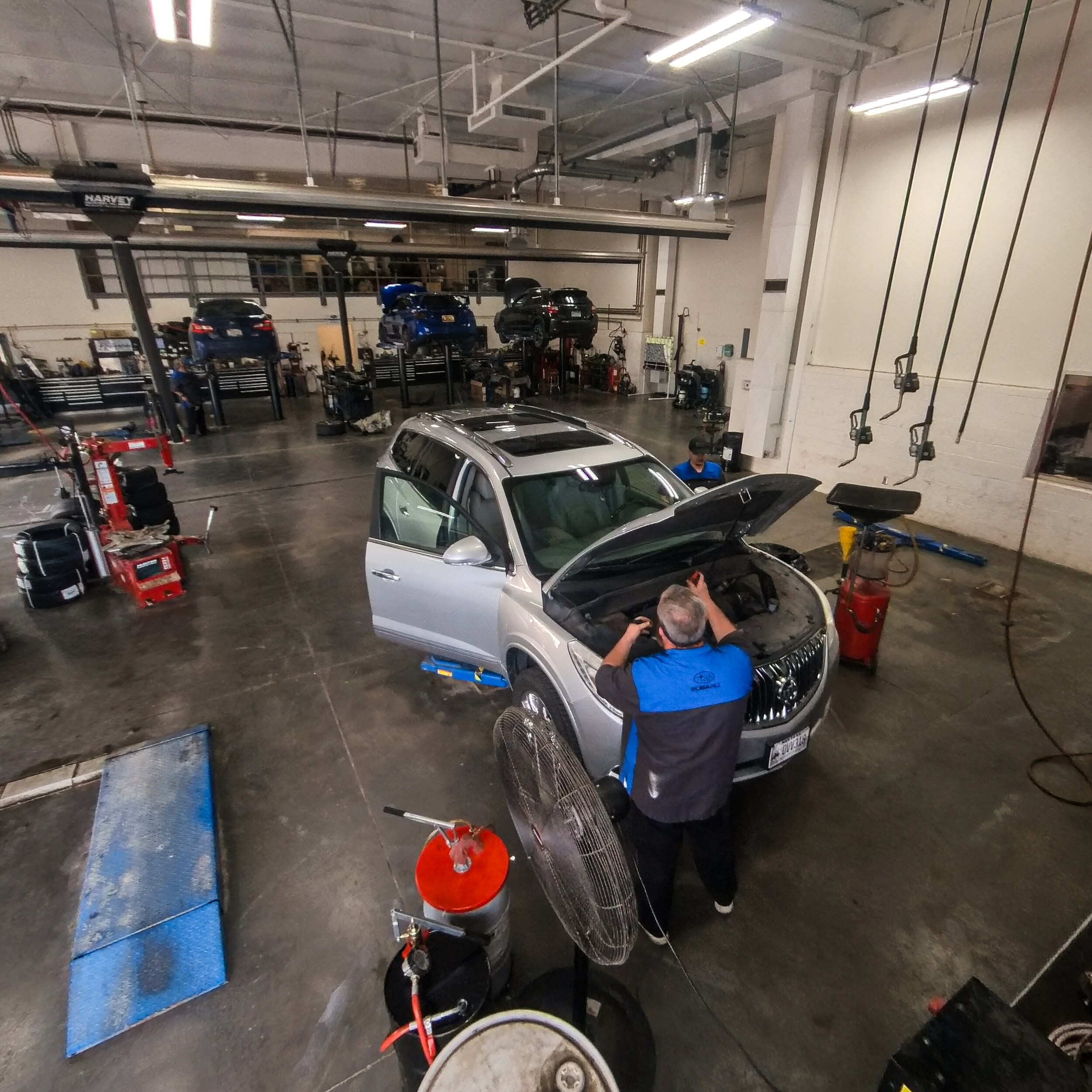 The service center provides maintenance and repair services including oil changes, tire rotation, brake service, and diagnostics.